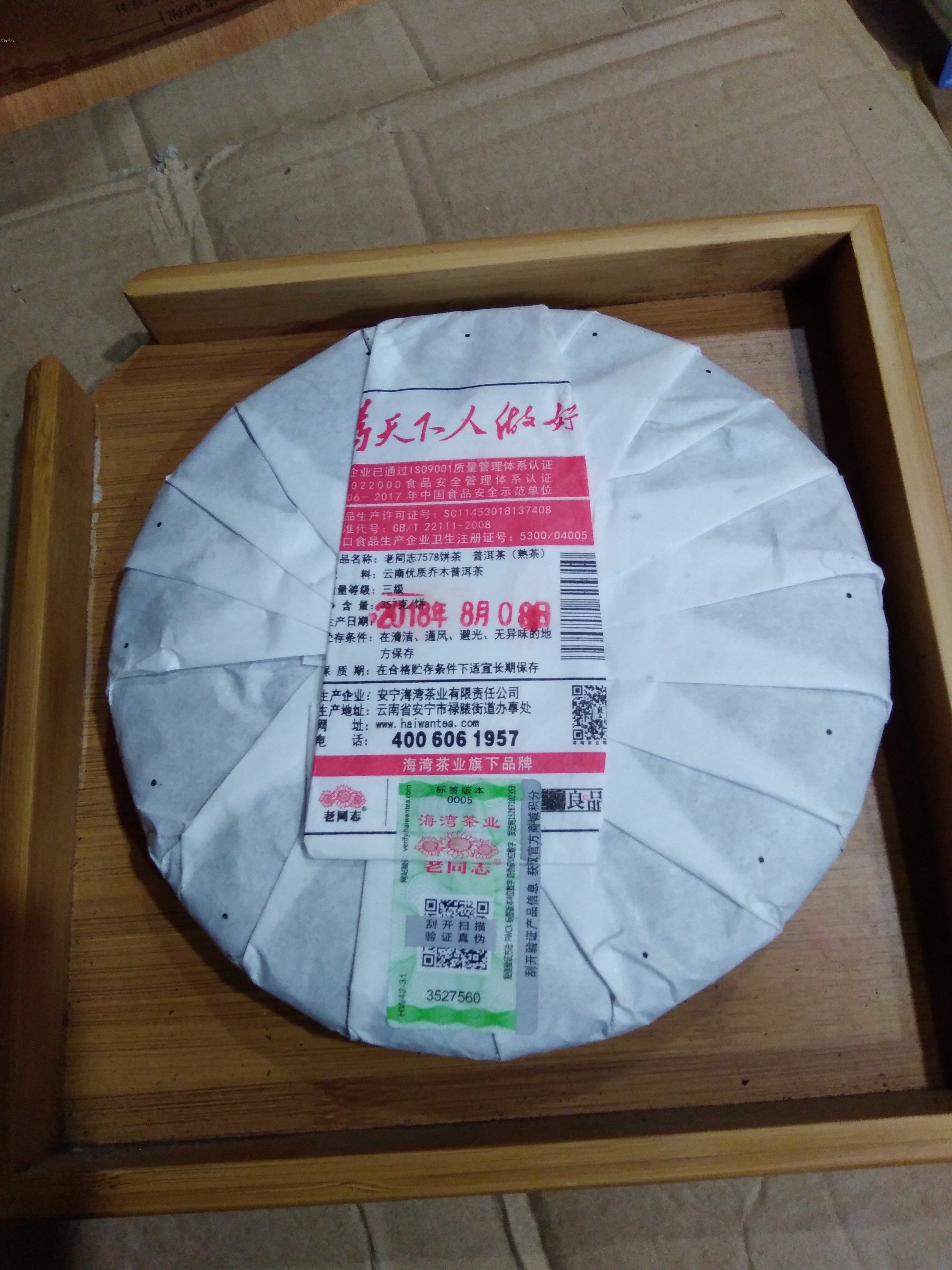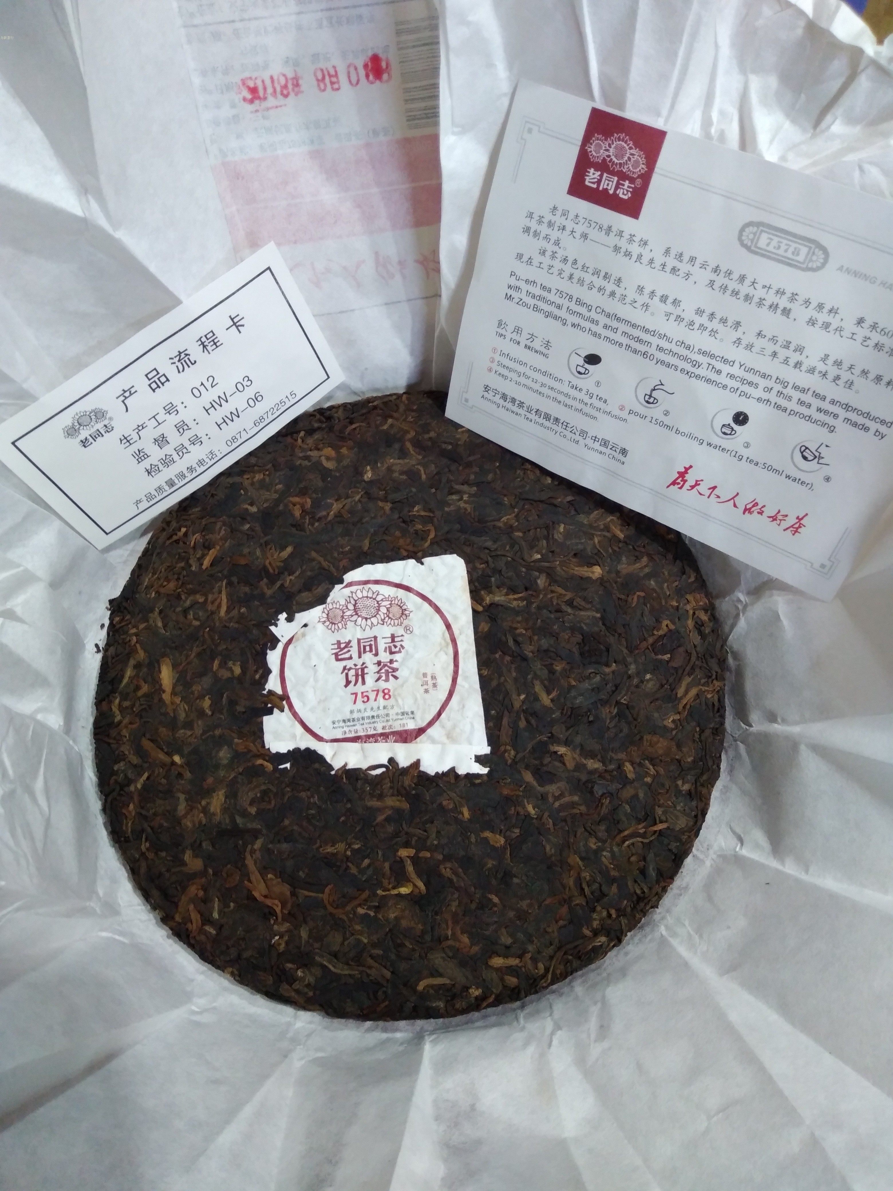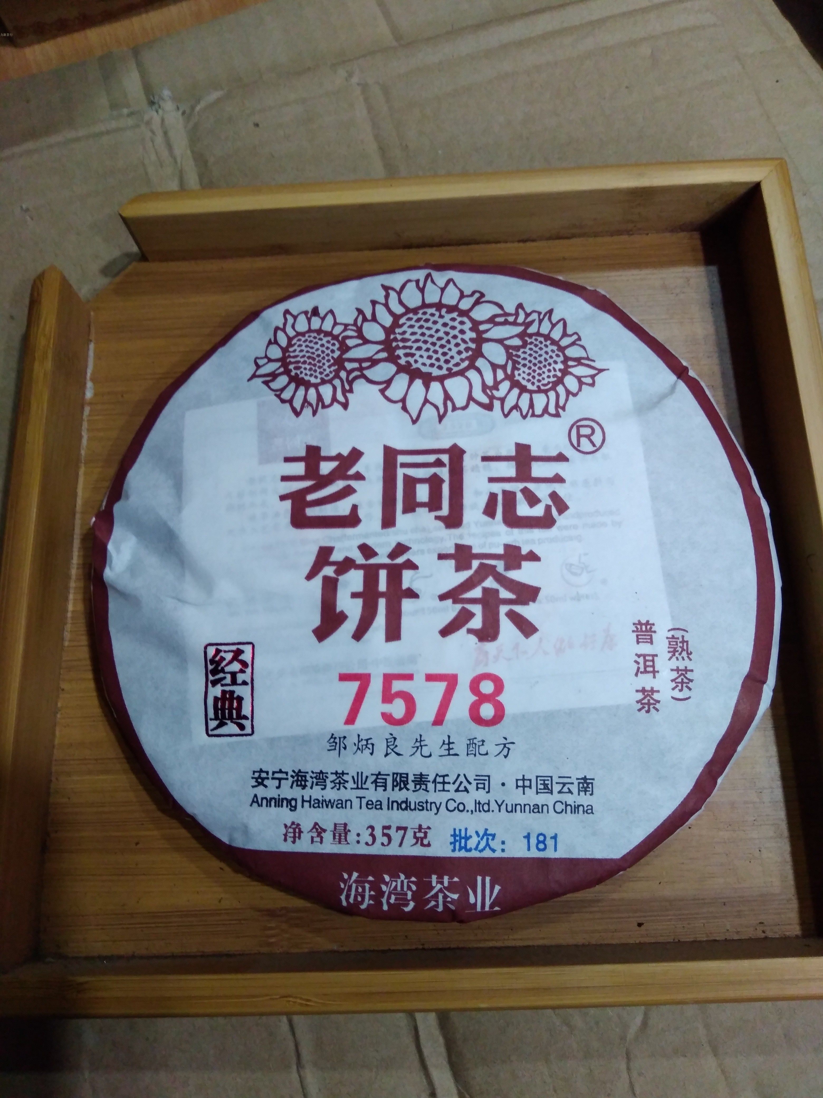 力新茶行 老同志饼茶 7578普洱茶 熟茶 海湾茶业 181批 357g 包邮 - 力新茶行