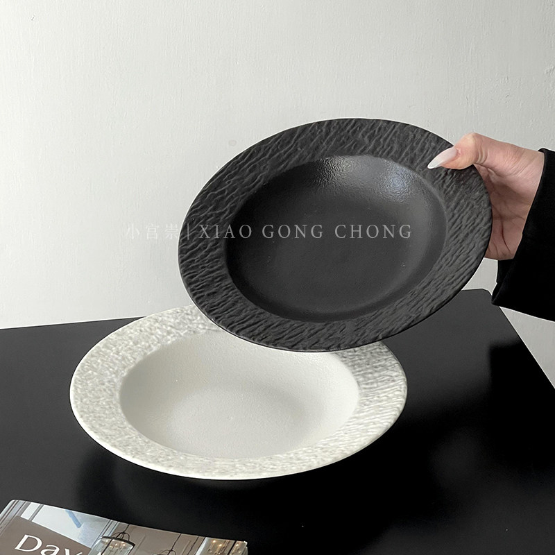 纯白高级感岩石纹草帽盘意面盘陶瓷盘子家用西餐盘汤盘深盘水果盘 - 小宫崇